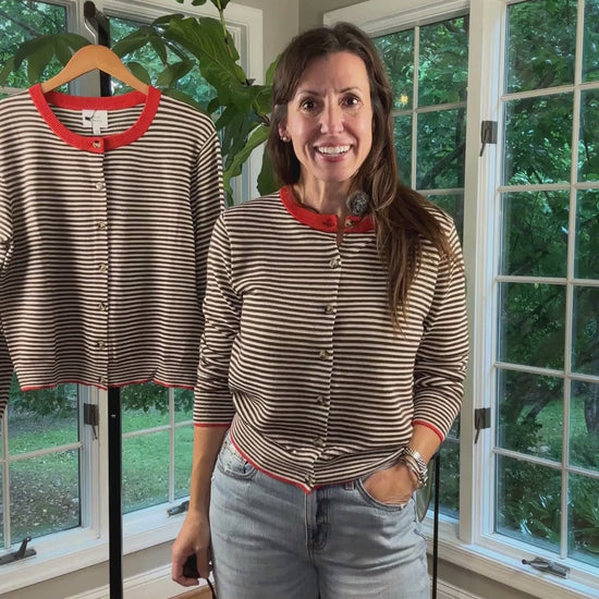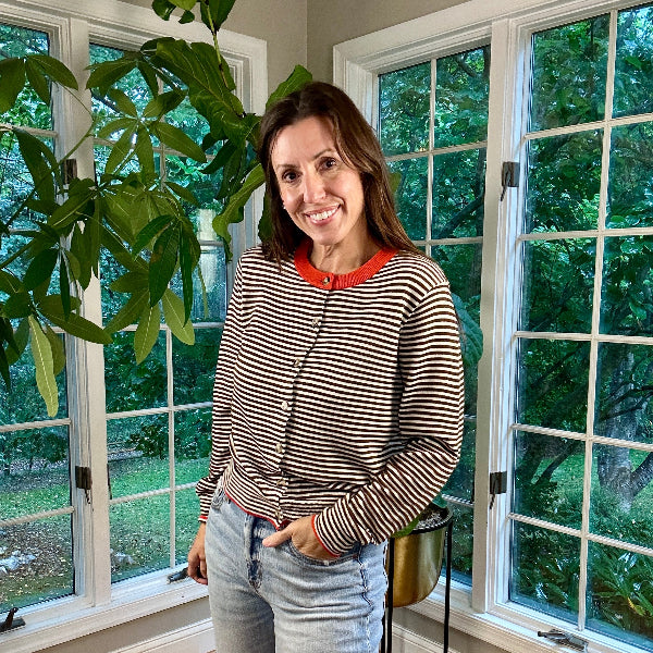 The Avery Cardigan embodies the philosophy of everyday ease. This cardigan features bold stripes with a contrast trim, creating a harmonious blend of comfort and casual-cool style. Perfect for those little moments in life, it's a testament to finding joy in the 'Things Between.' Wear it for an elevated touch to your everyday ensemble.