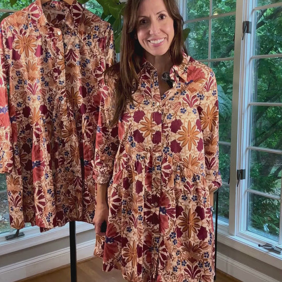 The Daisy Floral Button Dress features a flounce hem and a button down