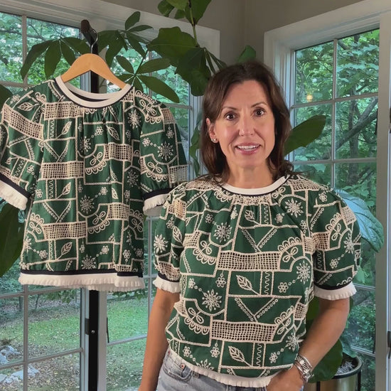 - Mixed embroidered woven fabric top