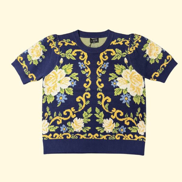 Floral flat knit short sleeve sweater top