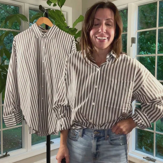 Mayra Stripe Shirt features a button down and a relaxed fit