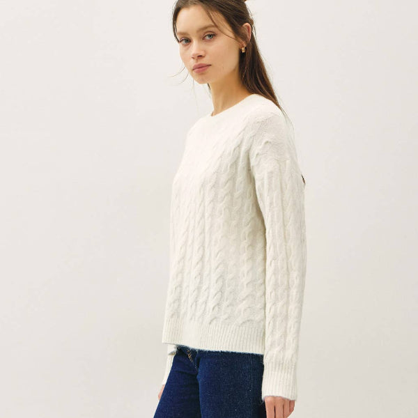 Ultra soft cable knit crew neck sweater